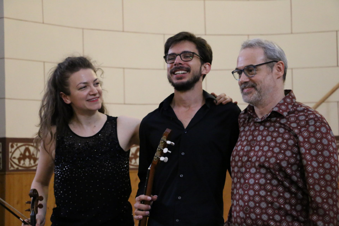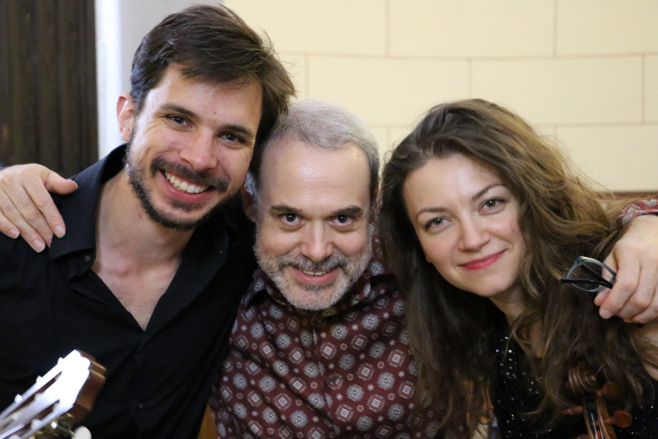 Con el guitarrista Jeremy Bass y la violinista Varvara Jitcov. Madrid, 23 julio 2016.