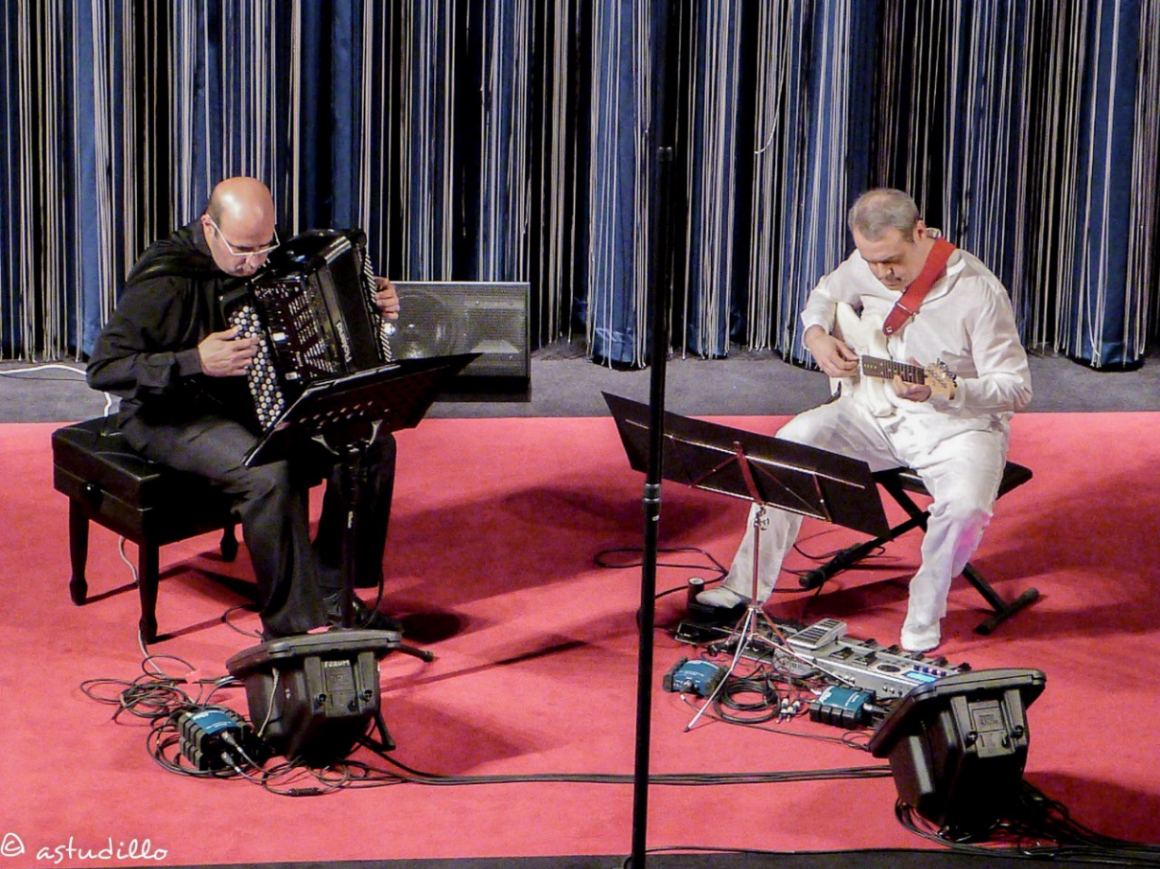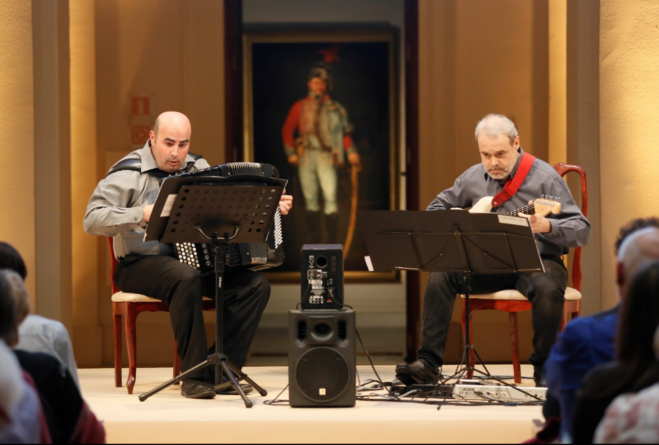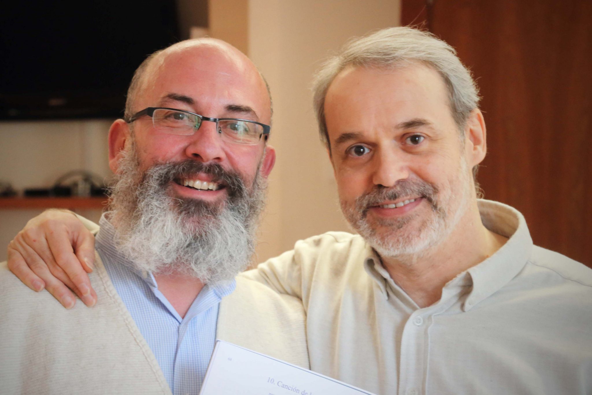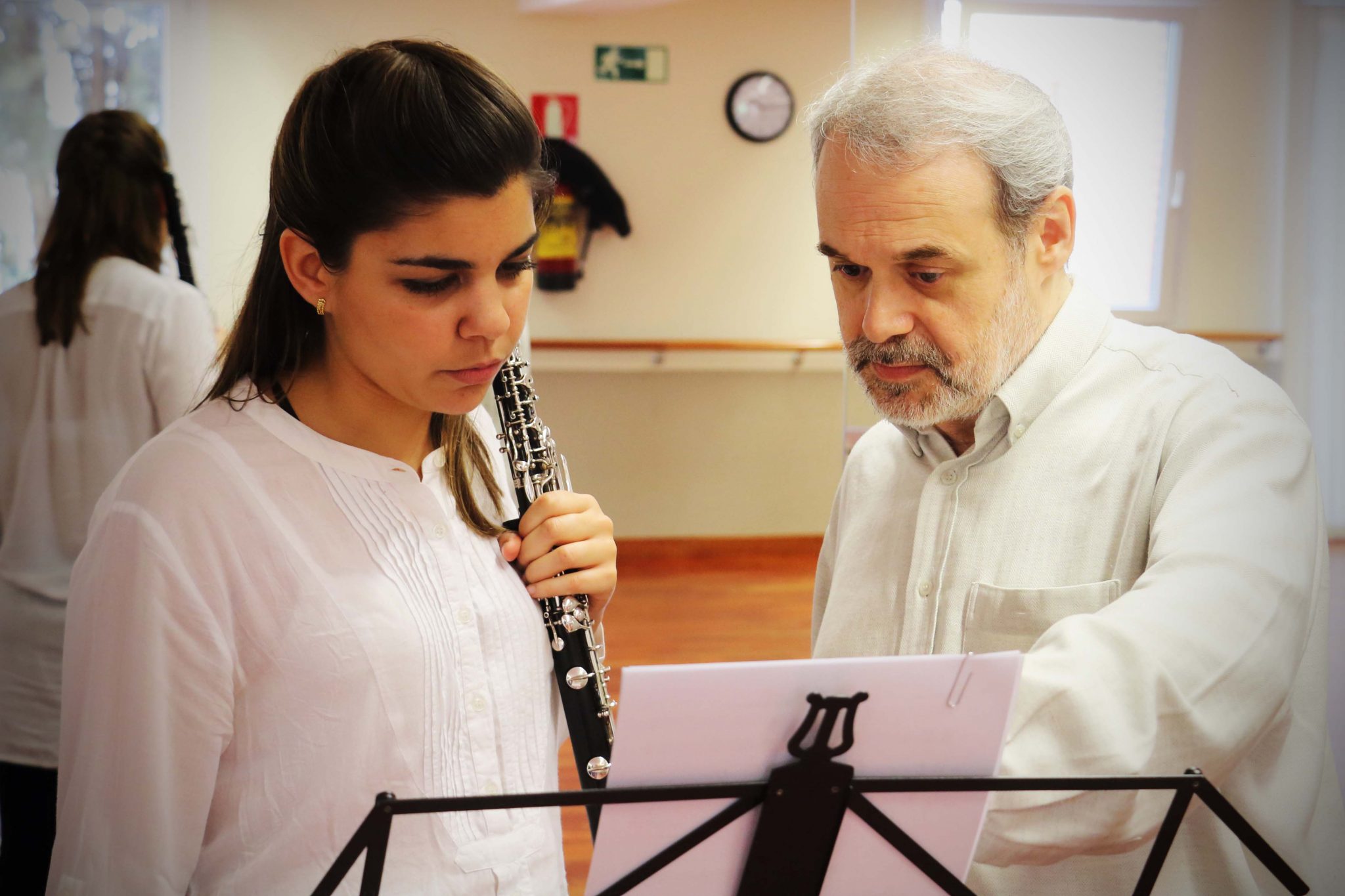 Con la oboísta Mercedes Guzmán. Ensayos Cantos de Quirce. Madrid, 2017.