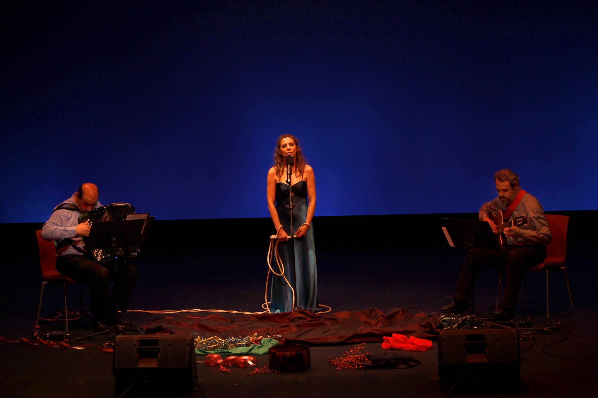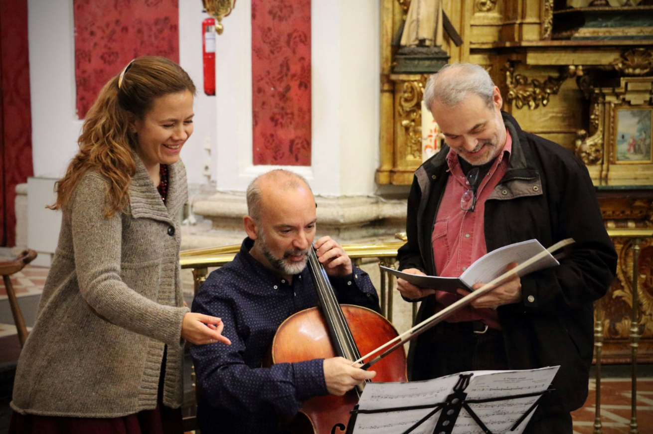 Con Gudrún Olafsdottir y Ángel Luis Quintana. Ensayos Cantos de Quirce. Madrid, 2017.